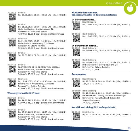 Hallenbad Brakel, Am Bahndamm 28 Mi, 22.01.2025, 18:15 - 19:00 Uhr (10x, 10 UStd.)